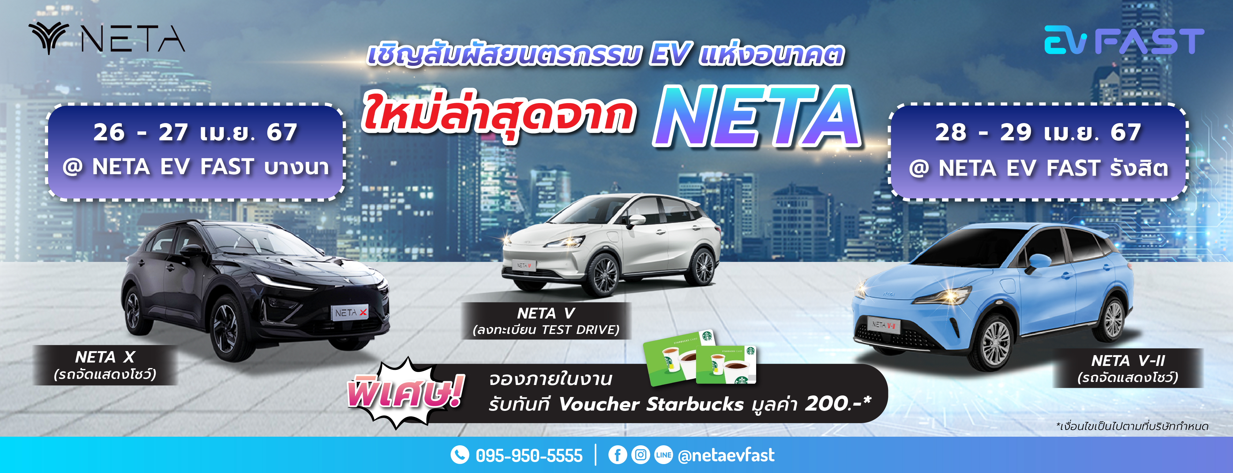 ✨ ห้ามพลาดโอกาสสัมผัสยนตรกรรม EV สุดล้ำ ที่มาพร้อมดีไซน์ล้ำสมัย เทคโนโลยีล้ำหน้า และสมรรถนะเหนือชั้น พิเศษสุดๆ จองรถภายในงาน รับฟรีทันที Voucher Starbucks มูลค่า 200 บาท*